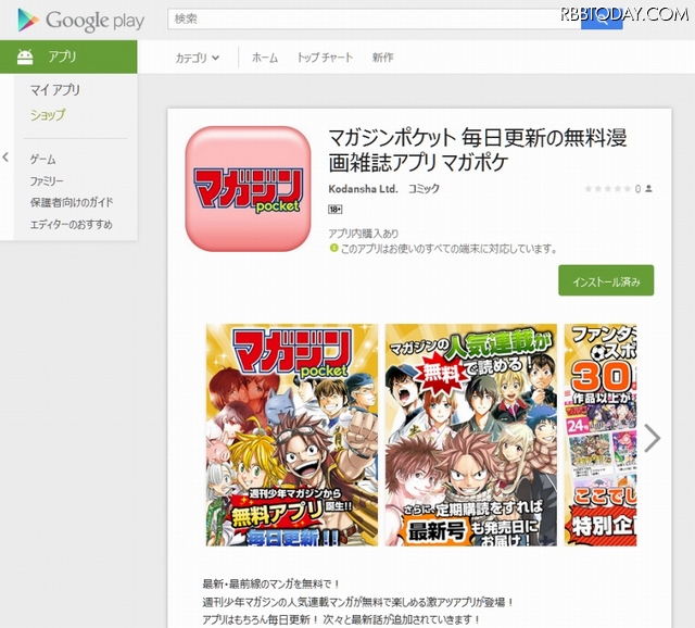 セガネットワークスと講談社は30日、無料マンガアプリ「マガジンポケット」の提供を開始した。「週刊少年マガジン」に現在連載中の人気作品が毎日更新され、30作品以上が無料で閲覧可能となっている(一部有料コンテンツあり)。
