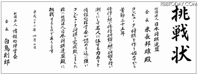 「コンピュータ将棋プロジェクト」は、情報処理学会の創立50周年(2010年)を記念してスタートしたプロジェクト。情報処理学会が2010年4月、日本将棋連盟に“挑戦状”を送ったことで口火を切り、2010年10月11日に清水市代女流王将(当時)との対戦が行われた。その後もさまざまな対戦が行われたが、現時点までに、「トッププロ棋士」(名人や竜王などの複数のタイトルを数年間以上に渡って保持している強いプロ棋士)とコンピュータ将棋の対戦は実現していない。