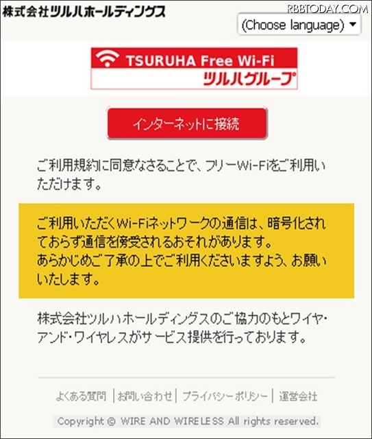 利用規約に同意し、ツルハグループのWebサイトへ接続後、ネットの利用が可能。表示は日・英・簡・繁・韓・タイの6言語に対応する。利用時間は連続1時間まで。再接続すれば繰り返しの利用が可能。