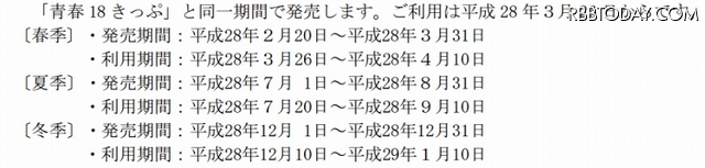 JRグループは5日、2016年の「青春18きっぷ」(11,850円)の販売予定について発表した。3月26日の北海道新幹線開業にともない「青春18きっぷ北海道新幹線オプション券」(2,300円)も発売する。春季は2月20日~3月31日の発売となる。