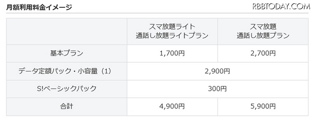 「データ定額パック・小容量(1)」は、データ通信の利用が少ないユーザーに向けたプランだ。「スマ放題ライト」の通話し放題ライトプランであれば、基本料1,700円、S!ベーシック300円とあわせ、月額4,900円でSoftBankスマートフォン(通話+データ通信)が利用可能となる。