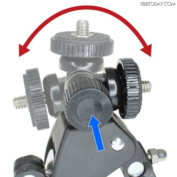 自転車のハンドルやフレームなどにクランプで挟む形で固定する。カメラを取り付ける雲台部分となる1/4-20 UNCネジ対応ホルダーは、上下180度に可動するため、正面以外のアングルでのムービー撮影も可能だ。