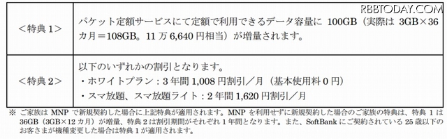 新規契約・機種変更する25歳以下ユーザーとその家族が「スマ放題」「スマ放題ライト」「ホワイトプラン」のいずれかの料金プランとパケット定額サービスに加入することで申し込みが可能。なお機種変更の場合は、データ容量の増量特典が適用される。