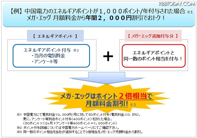 エネルギア・コミュニケーションズ(エネコム)と中国電力は13日、「メガ・エッグ でんき割メニュー」など家庭向け新サービスの提供を発表した。「メガ・エッグ でんき割メニュー」は、4月1日より受付を開始する。