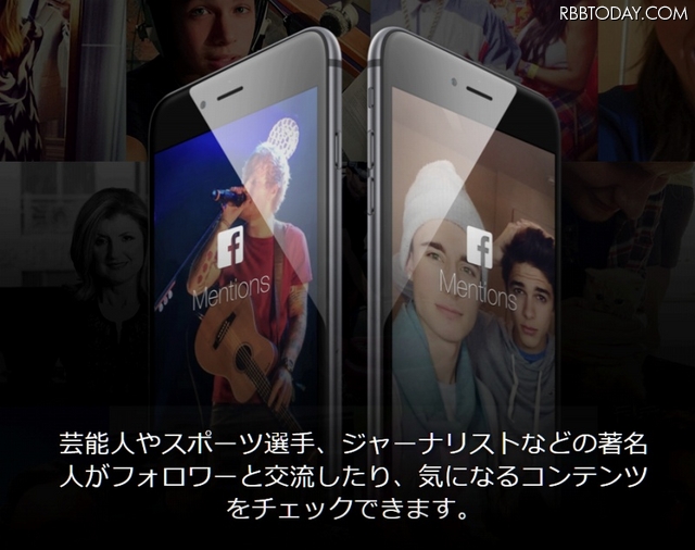 「Facebook Mentions」は、スポーツ選手、ミュージシャン、政治家といった著名人が、ファンや他の有名人と交流するための専用アプリだ。ライブ動画の配信にも対応している。視聴者側も、気軽にコメントや「いいね!」、シェアなどが可能。著名人をフォローするとニュースフィードに情報が表示される。