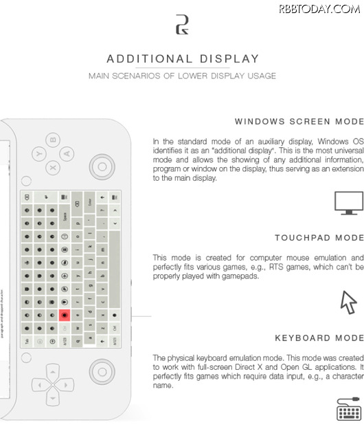 ゲームをプレイするからには、音響にもこだわりたいところだが、「PGS」は5チャンネルサウンドシステムが採用されているので、臨場感のあるサウンドが楽しめる。サブディスプレイのサイドには、ジョイスティックをはじめとしたゲーム用のボタンが搭載されているので、ゲーミングデバイスとして操作性も良さそうだ。