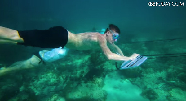 「Subwing」は、両手に装着するフィンのようなアイテムだ。ボートに先導してもらいながら、それぞれのボードの角度を変えることによって、まるで海中を自由自在に飛び回っているかのような感覚を味わることができる。海外人気YouTuberであるdevinsupertrampが公開している動画を見れば、その迫力やエキサイティングな様子は伝わってくるだろう。左右はもちろん、回転だって可能なのだから、気分はさながらイルカといったところか。