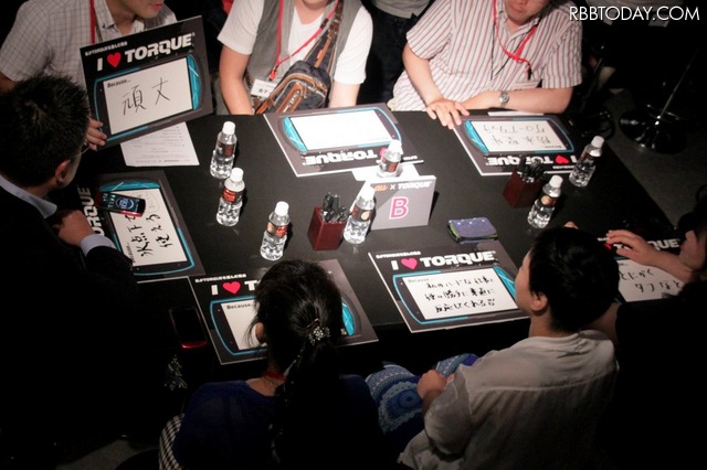 イベントはこの後、懇親会、開発技術者のテーブル巡回およびプレゼンテーション、食事会、ノベルティ抽選会と進行していった。うれしそうにTORQUEについて語り合うオーナーたち。そこかしこで歓談の声が聞かれ、少し離れた場所にあるプレス席にもその熱量が伝わってきた。これは筆者の主観だが、iPhoneやXperiaのユーザーは身近にもたくさんいる。しかしTORQUEとなるとそう多くはない。このため、TORQUEオーナーは常日頃から愛機の良さを共感しあえる仲間を探していたのではないだろうか。