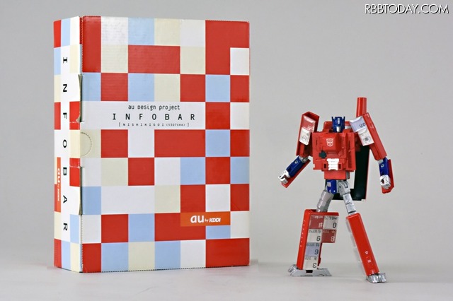 KDDIとタカラトミーは1日、au の「INFOBAR(インフォバー」が超ロボット生命体「トランスフォーマー」に変形した玩具をクラウドファンディング限定で発売する「au×TRANSFORMERS PROJECT」を実施すると発表した。