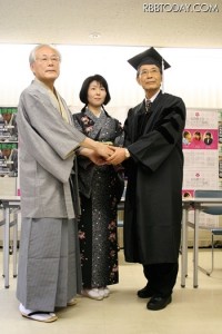左から米長会長(日本将棋連盟)、清水市代女流王将・女流王位、白鳥会長(情報処理学会)