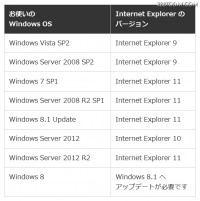 1月13日以降に利用可能なInternet Explorerのバージョン