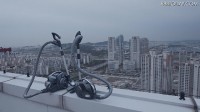 そこまでやるか!? 金髪美女が高層ビルをよじ登ってLGの掃除機の吸引力を証明