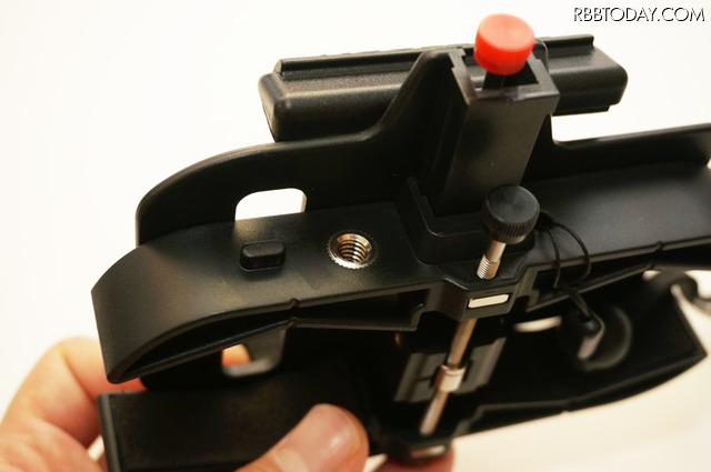 底面にはスクリュー穴を設けて三脚や一脚が使えるようにしている